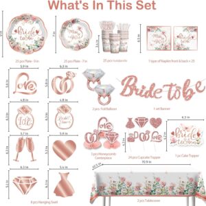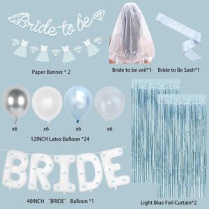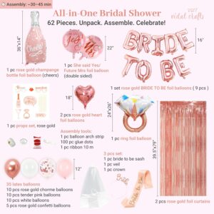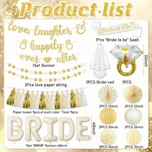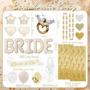 53-piece champagne gold bridal set with balloons, sash, veil, and foil curtains.