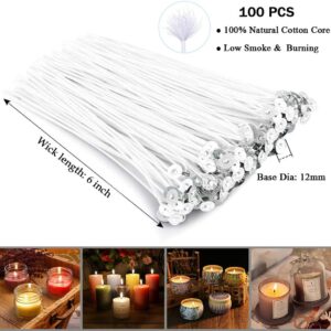 100pcs Cotton Candle Wicks, 6 inches Low Smoke Pre-Waxed Wicks for Candle Making, DIY