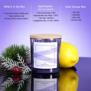 15 Pack Glass Candle Jars – 8oz Purple with Lids, 20 Labels, Mercury Glass for Candle Making