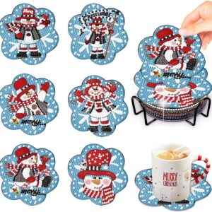 6 Pcs Diamond Art Coaster Kits – Christmas Snowman, 5D Gem Art for Adults & Beginners, Includes Cork Pads