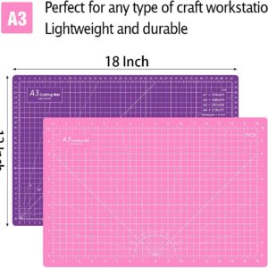 18″x12″ Self-Healing Cutting Mat – A3 Double-Sided, 5-Ply for Crafts & Sewing, Pink/Purple