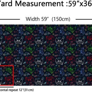 1 Yard Boys Gamer Upholstery Fabric – Gaming Controller Print, Red/Blue/Green, Indoor & Outdoor Use