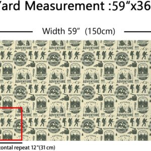 1 Yard Camper Adventure Fabric – Retro Car, Mountain Hiking & Camping Theme, Indoor/Outdoor Upholstery