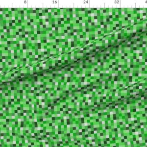 Gaming Pixel Fabric – Green Video Game Design on Cotton, Fat Quarter for Sewing & Crafts