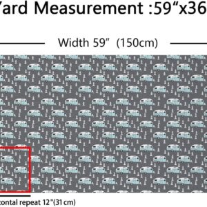 1 Yard Camper Fabric – Kids Cartoon RV Camping Theme, Grey, Indoor/Outdoor Upholstery & Crafts