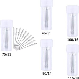 50 pcs Sewing Machine Needles – Sizes 9, 11, 14, 16, 18 with 5 Storage Bottles