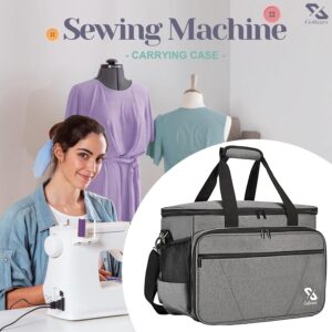 JJRING Sewing Machine Carrying Case, Portable Sewing Machine Bag with Shoulder Strap, Heavy Duty Sewing Machine Tote Suitable for Standard Sewing Machines, Grey