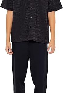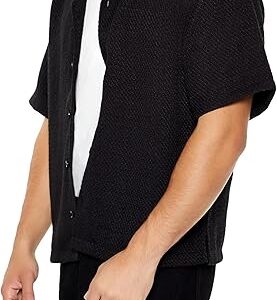 Men’s Boxy Cropped Boucle Shirt Textured Short Sleeve Button Up