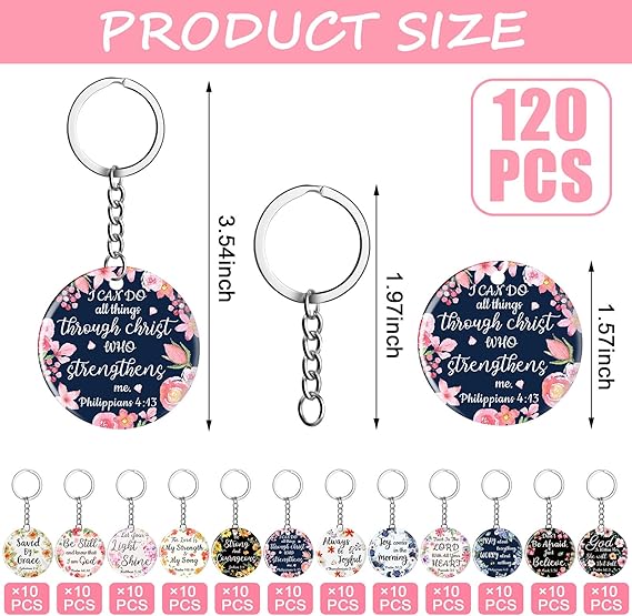 120 floral acrylic keychains featuring religious Bible verses for men and women.