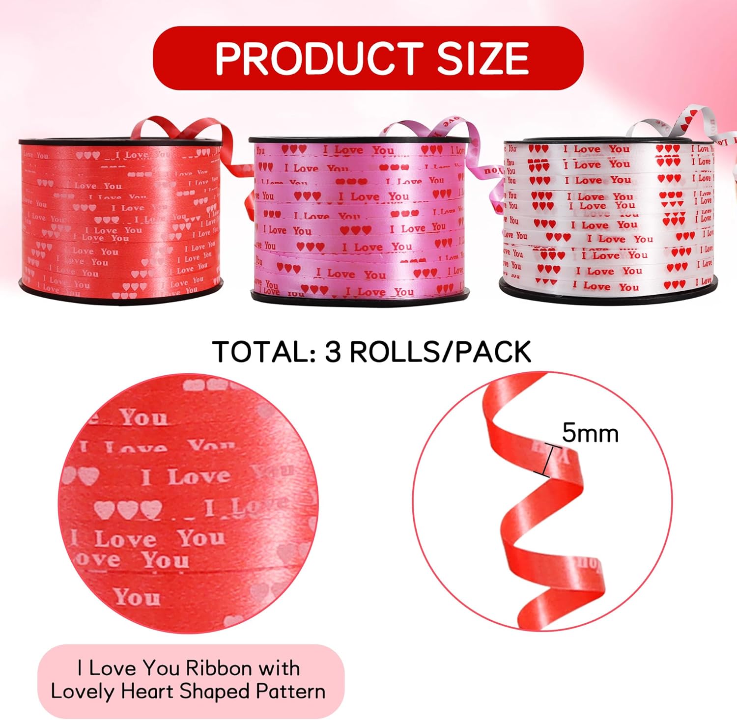 Full Set Included: Contains three rolls of heart-patterned and “I Love You” ribbons in three festive colors.