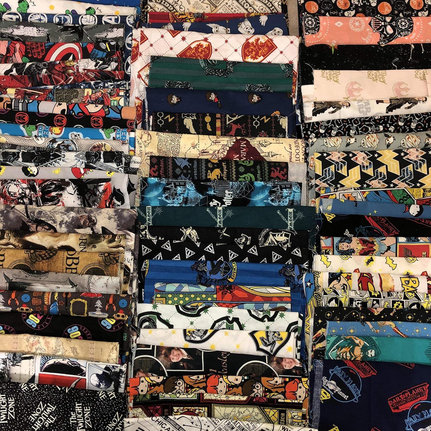 •1 Pound Fabric Bundle – Assorted remnants featuring movie, TV series, and more themed prints