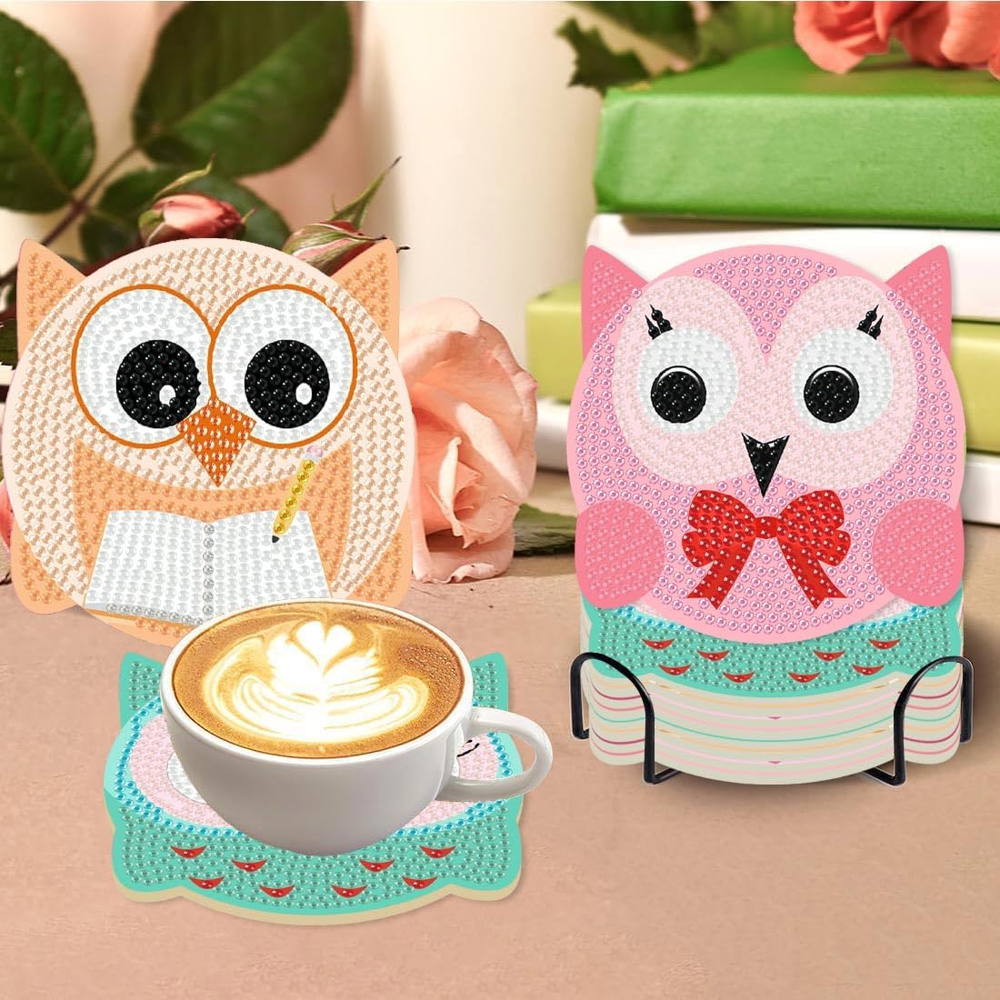 • 【Premium Material】:Our diamond painting coasters are made of a durable and thick wood base, with high viscosity, rhinestones can stick firmly to the surface, Shiny and less likely to fade, making the coasters pattern clear and vivid. Come with a metal holder and thick wood base for easy storage and tabletop protection.