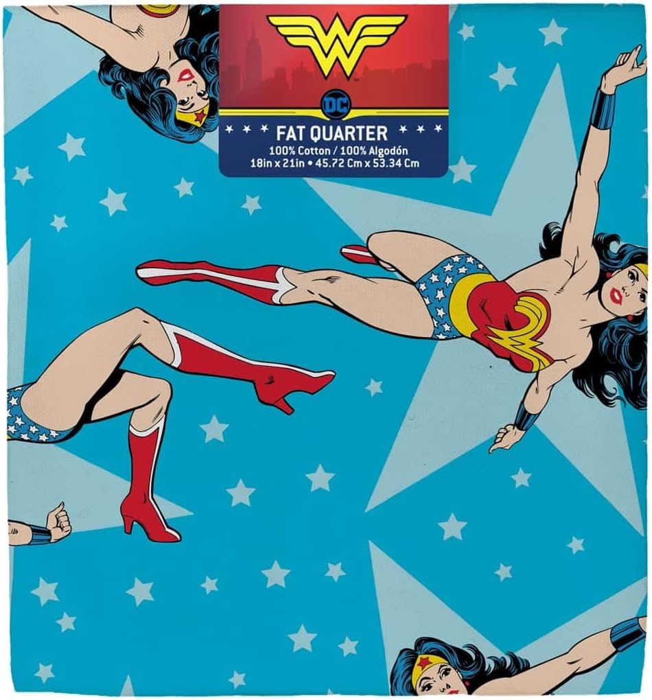 •Wonder Woman Fat Quarter Bundle (6 pcs.) – Includes six 18″ × 22″ cotton fabric fat quarters featuring iconic Wonder Woman designs