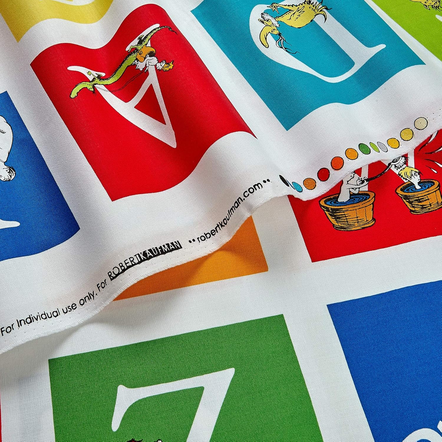 • Designed by Dr. Seuss Enterprises and Robert Kaufman, this cotton panel is perfect for quilting, apparel, and home décor accents. Panel measures about 24” x 44”. Colors include red, green, orange, yellow, blue, brown, black, and white. This is a licensed fabric and not for commercial use.