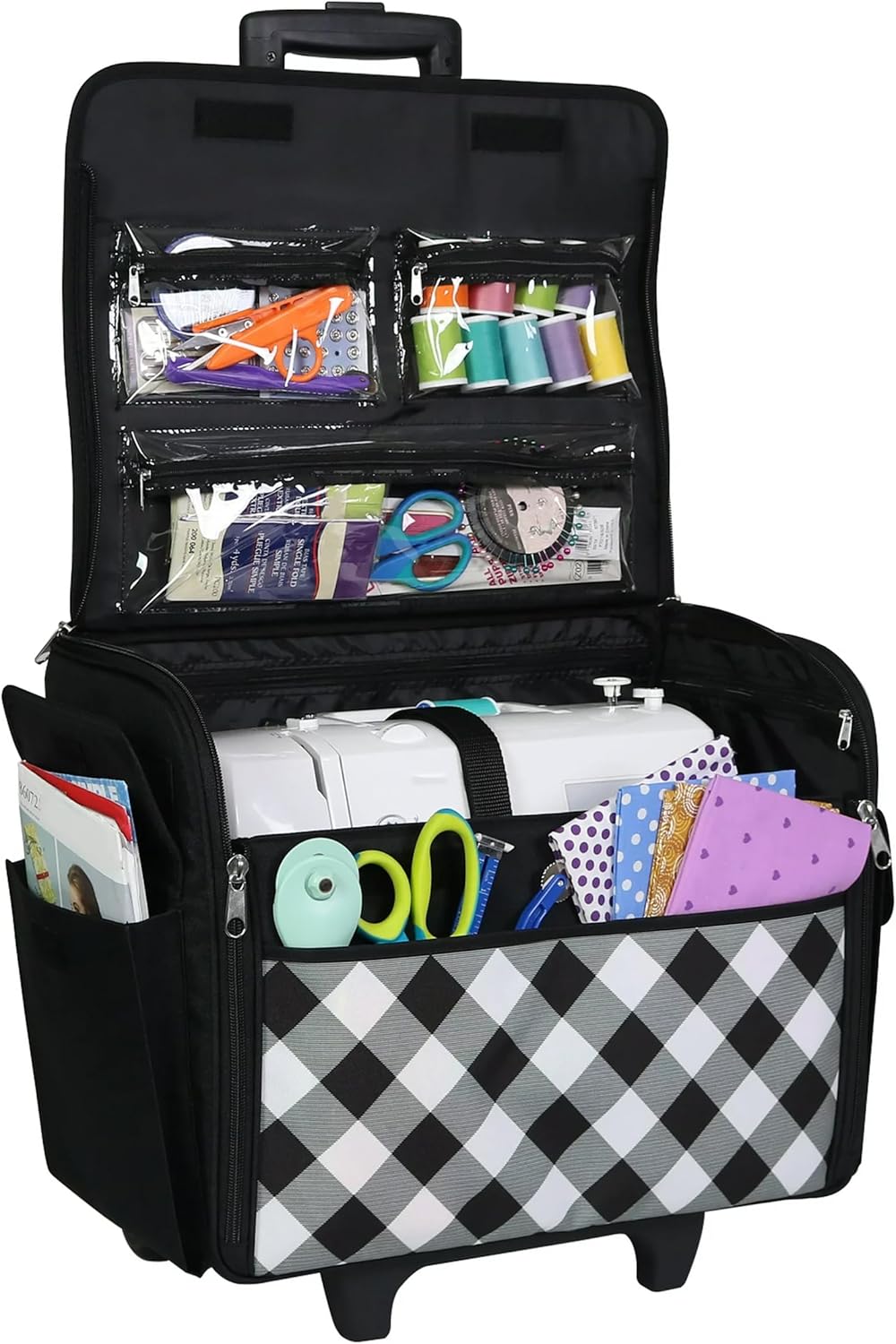 • Spacious & Organized Storage: Features 21 compartments, including multiple pockets and clear pouches, to neatly store sewing supplies, accessories, and tools.