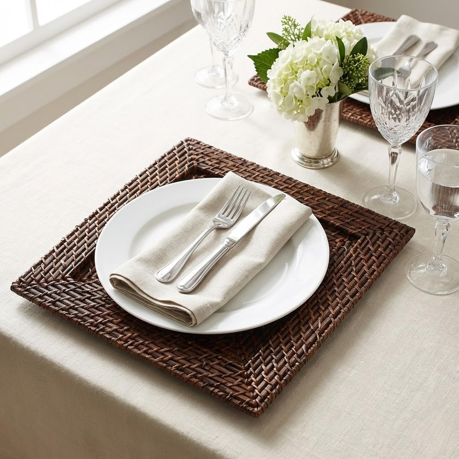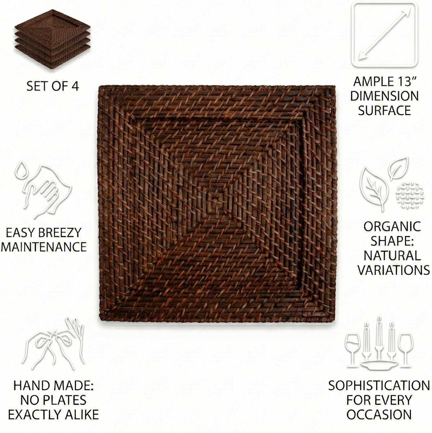Instant Rustic Elegance: This set of four decorative chargers creates a stunning, natural focal point for any professional table setting.