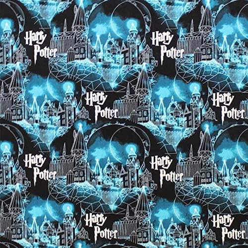 •Harry Potter “Hogwarts Moon” Design – Elegant black-and-blue fabric featuring the iconic Hogwarts silhouette under a mystical moonlit sky