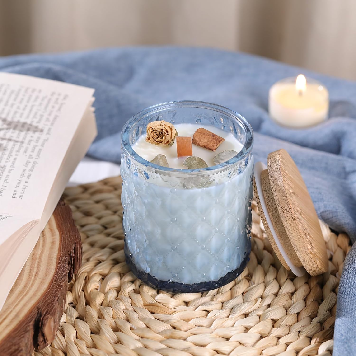 • Candle Making Supplies: You will get 8pcs blue candle containers and 8pcs bamboo lids. Each glass has a separate packaging protecting the glass from chips and cracks. However, due to transportation problems, some of the jars received were broken. Please contact us in time to solve the problem