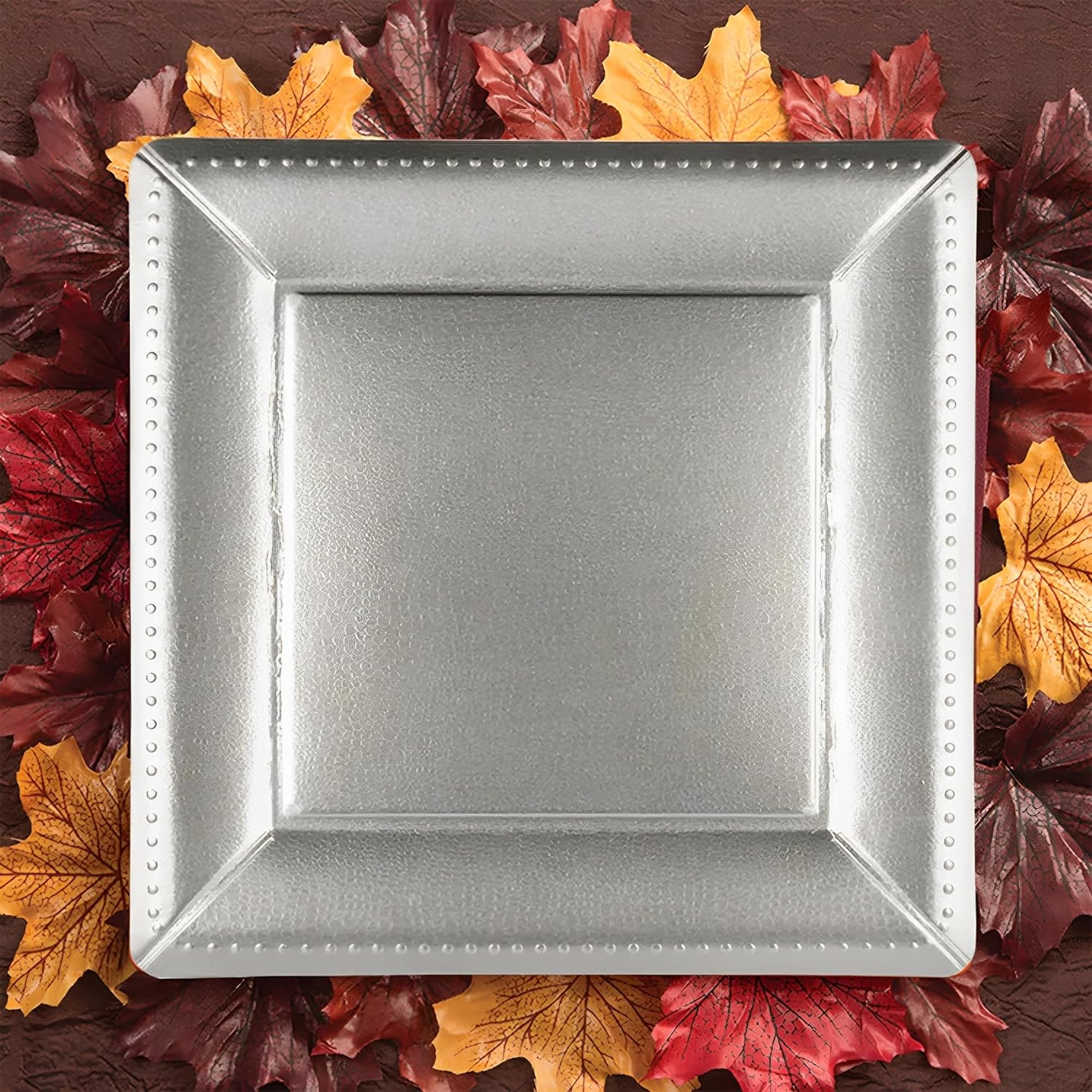 • Luxurious Silver Design: Features a unique metallic square finish with intricate beaded edges for a regal, upscale event aesthetic.
