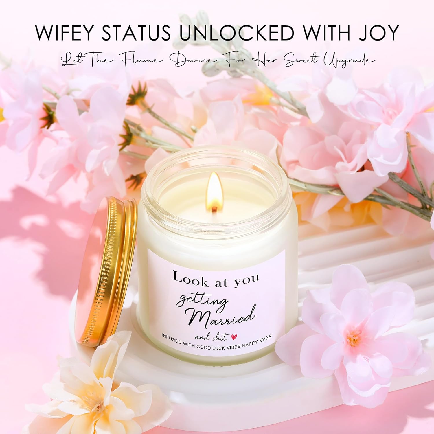 Comprehensive Gift Set: Includes 11 curated items like a wifey-themed glass, wine glass, makeup bag, candle, and jewelry tray.