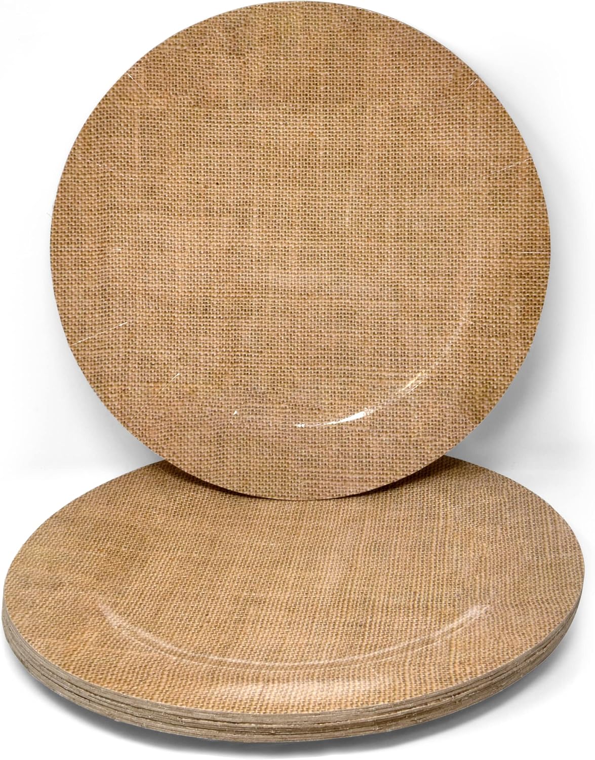 Bulk 24-Piece Set: Includes 13-inch round chargers featuring a realistic burlap-printed design and elegant pebbled texture for tablescapes.