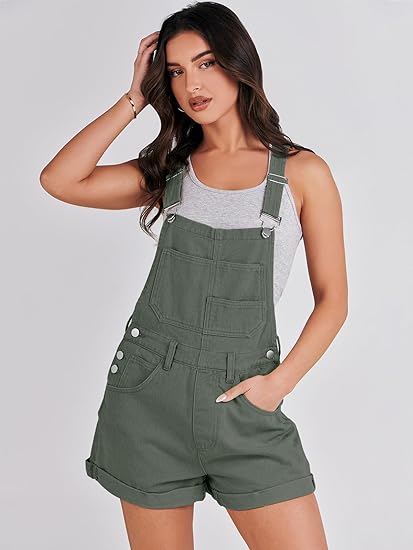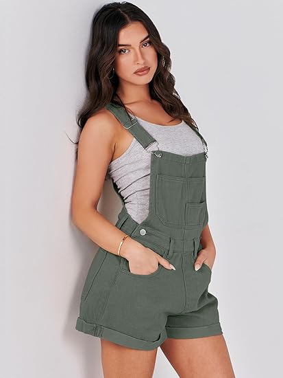 Women Denim Short Overalls Casual Loose Fit Adjustable Bib Shortalls Romper