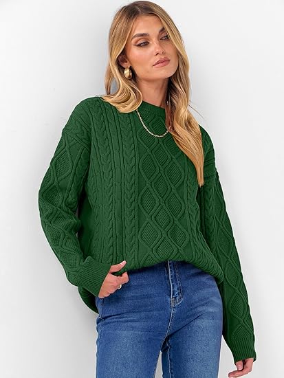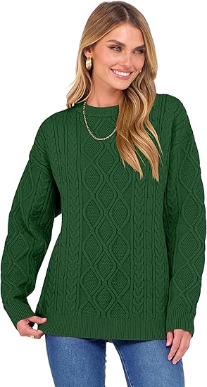 • Designed with a classic crew neckline and a stylish oversized cable knit pattern that creates a cozy yet fashionable look for everyday outfits.