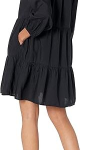 Womens Ruffle-Neck Tiered Mini Dress Loose Pockets